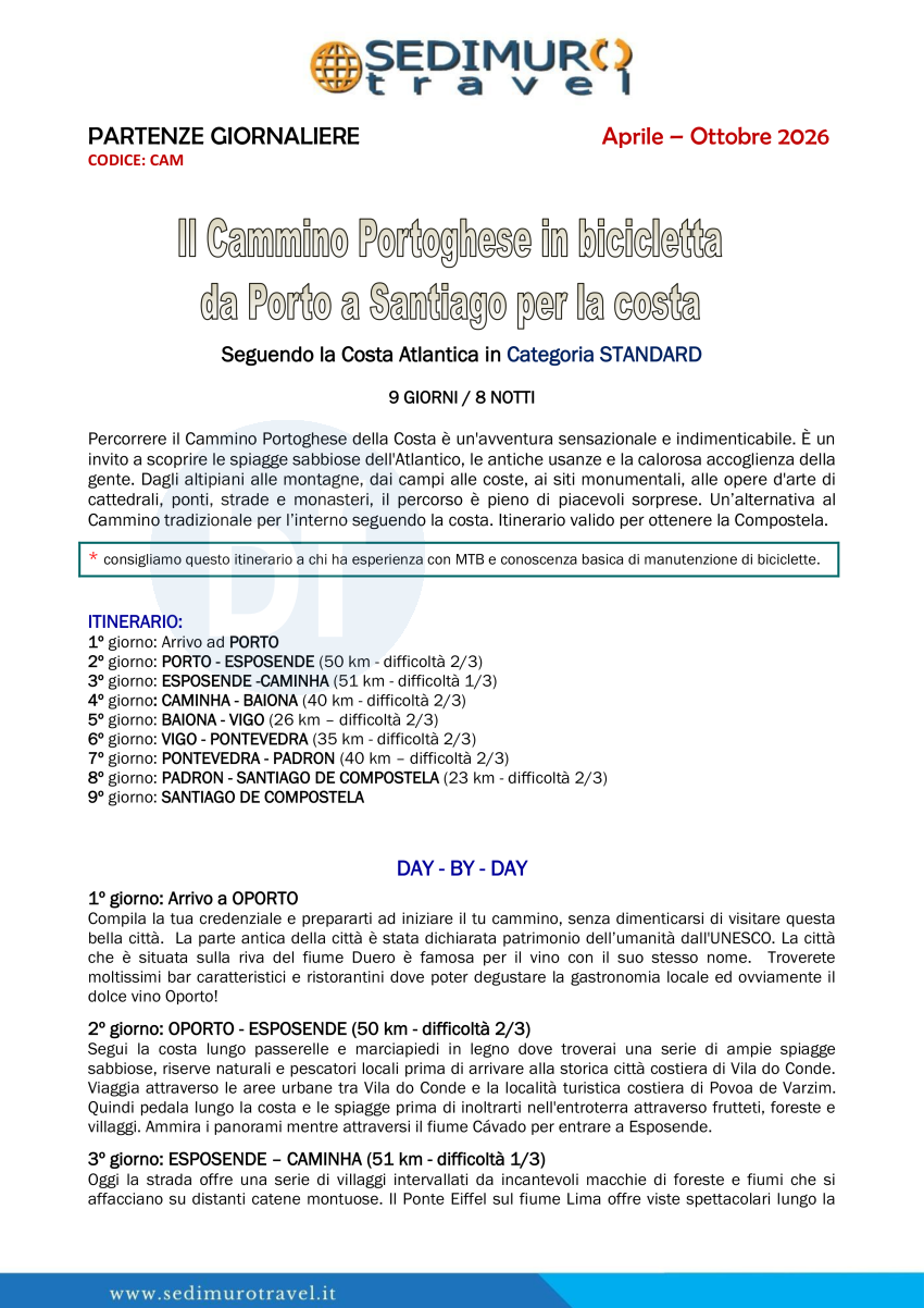 Il Cammino Portoghese in bicicletta da Porto a Santiago per la costa 9 giorni