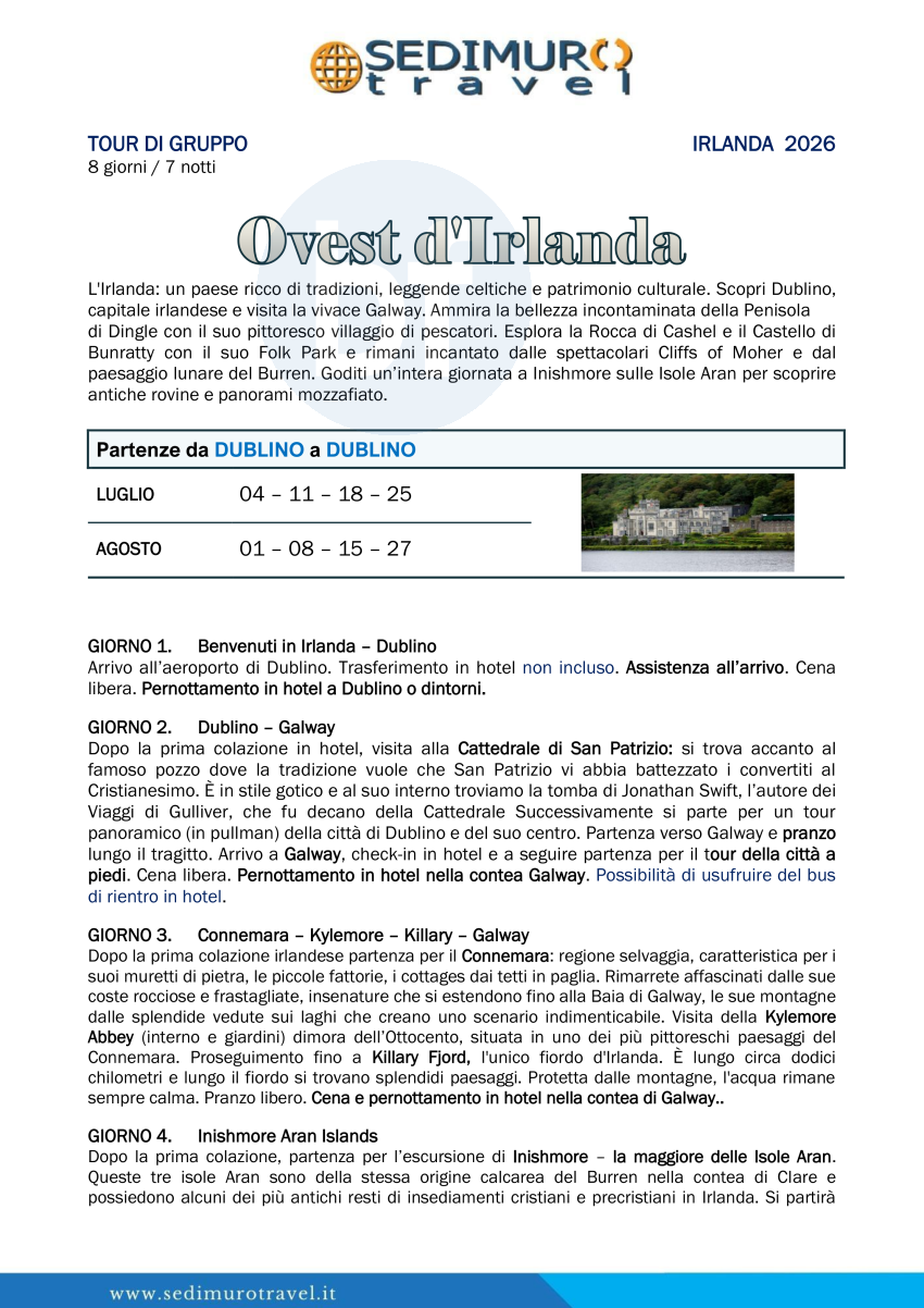 Ovest d'Irlanda da Dublino luglio e agosto 8 giorni