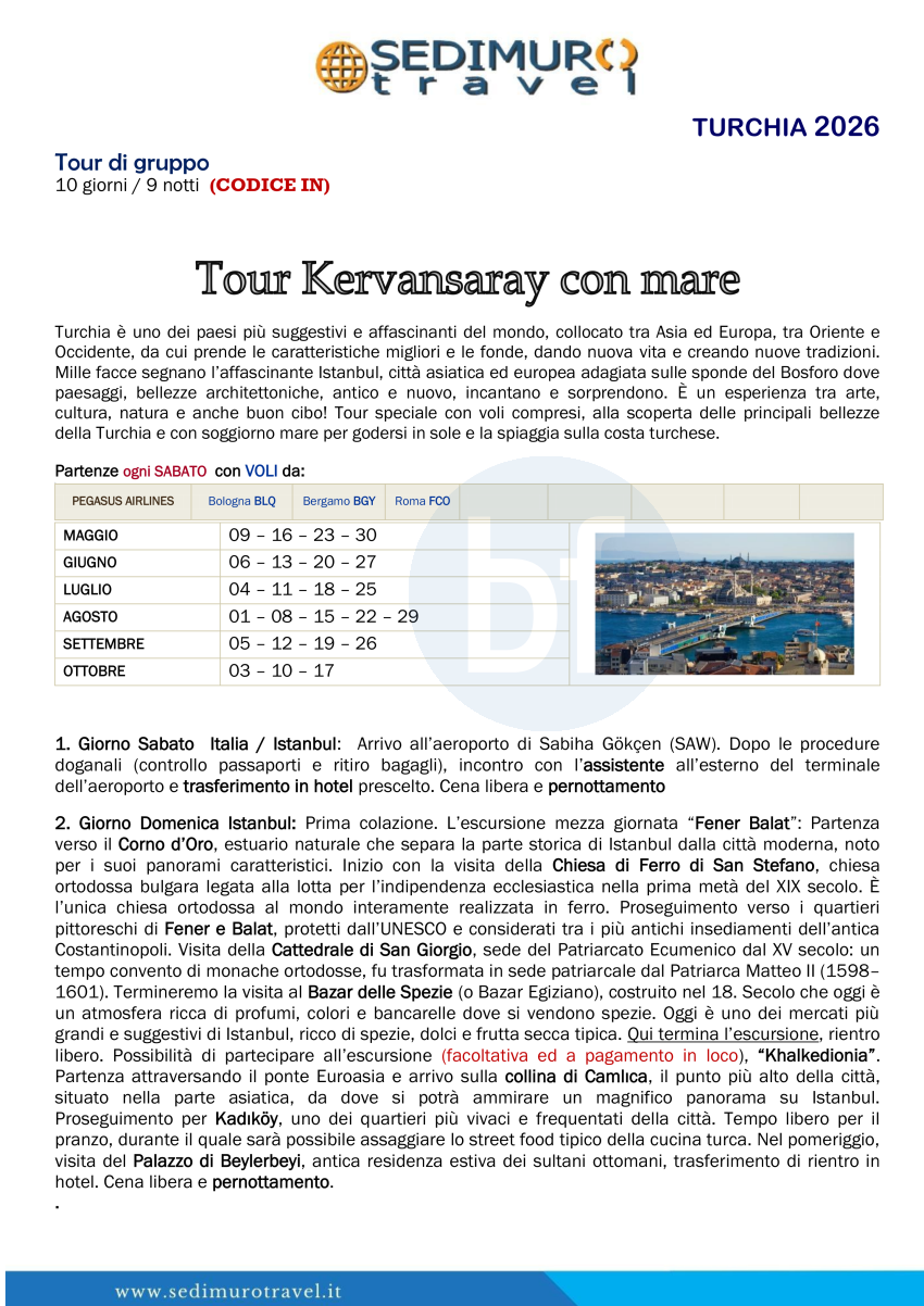 Tour Kervansaray con mare Bodrum con volo da BGY, BLQ e FCO ogni sabato 10 giorni
