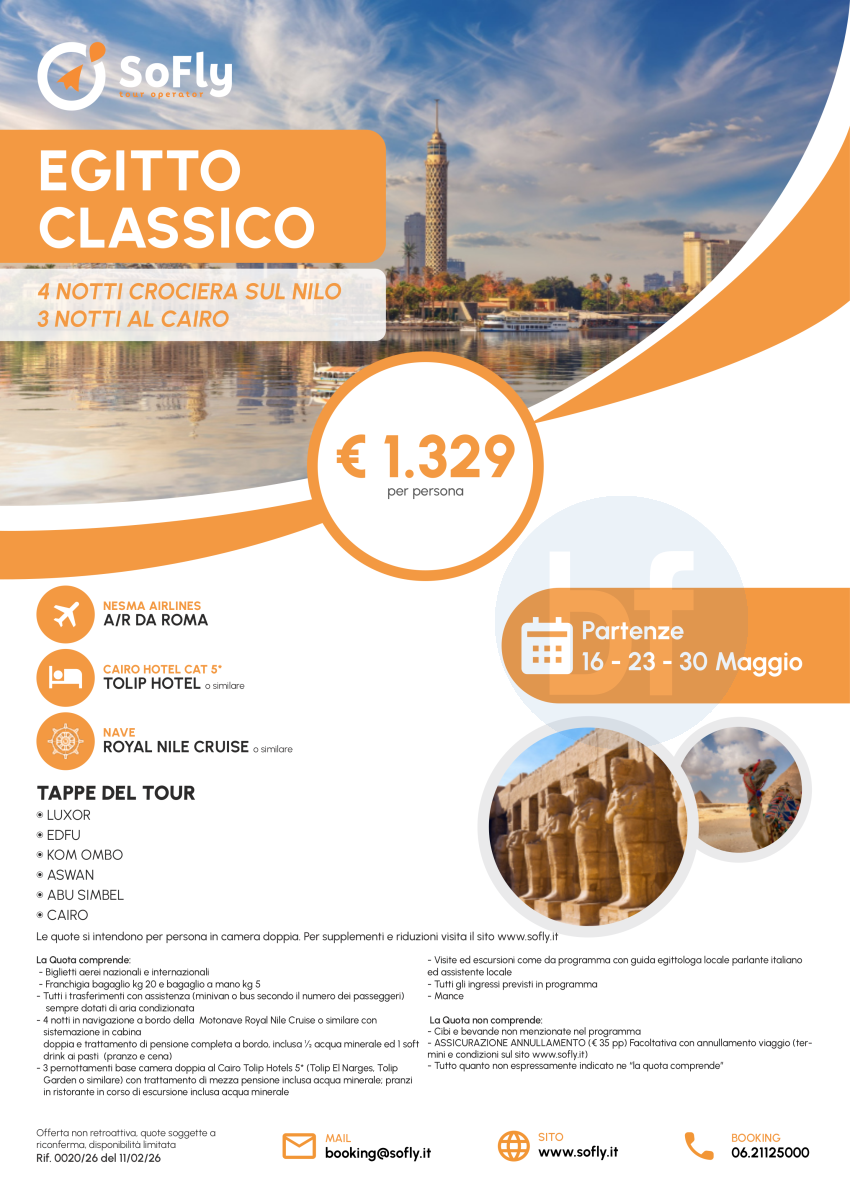 Egitto Classico Speciale Maggio con Volo da Roma a partire da € 1329 a persona