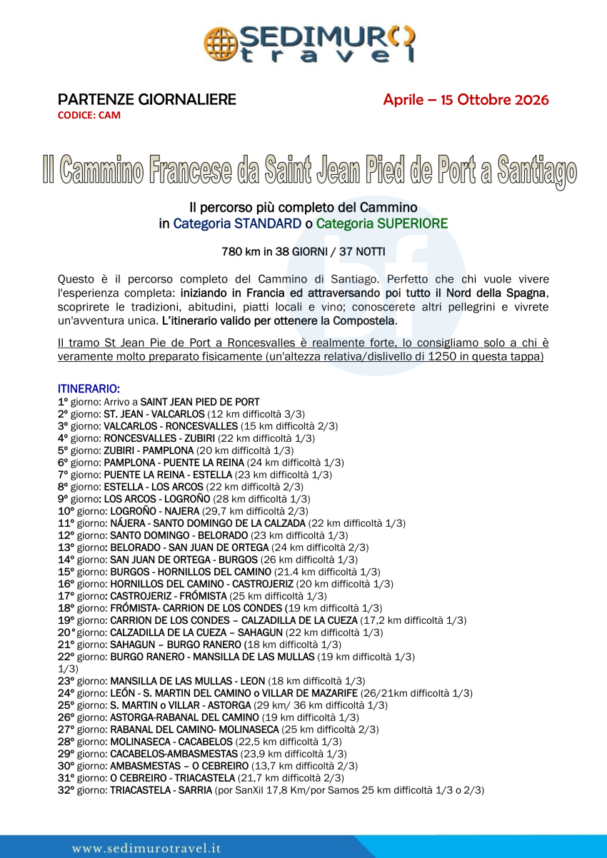 Il Cammino Francese da St Jean Pied de Port a Santiago 38 giorni