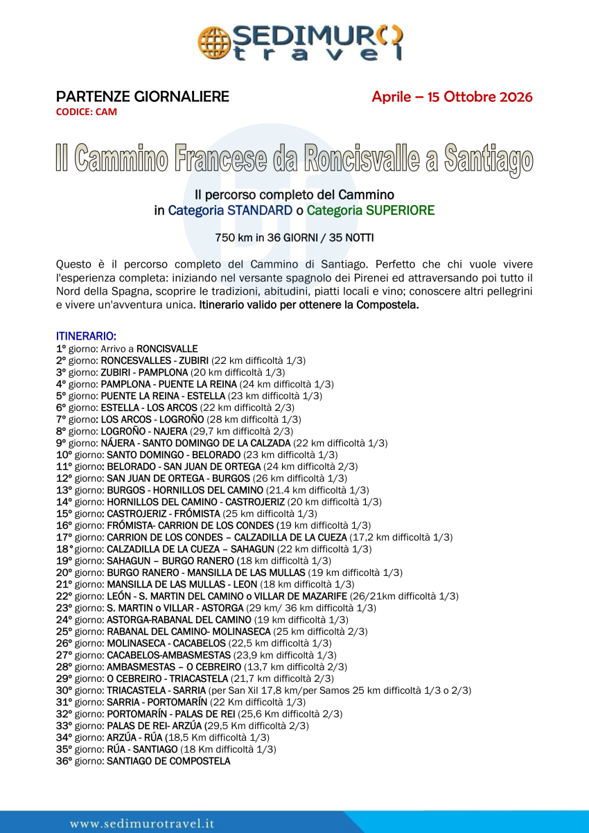 Il Cammino Francese da Roncisvalle a Santiago 36 giorni