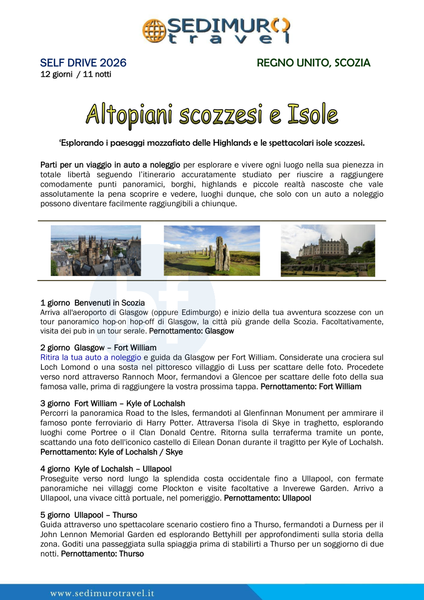 Altopiani scozzesi e Isole da Edimburgo o Glasgow in auto a noleggio 12 giorni