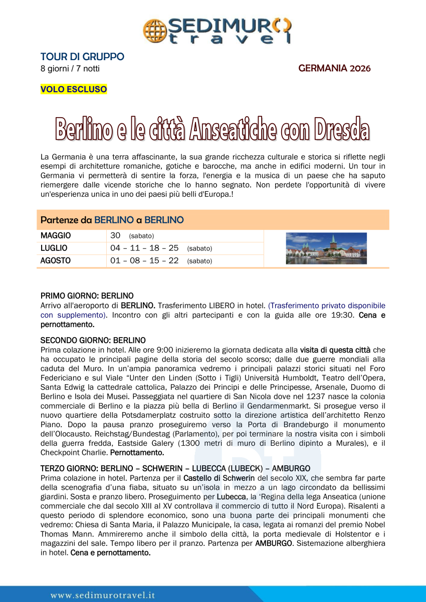 Berlino e le città Anseatiche con Dresda da Berlino 8 giorni