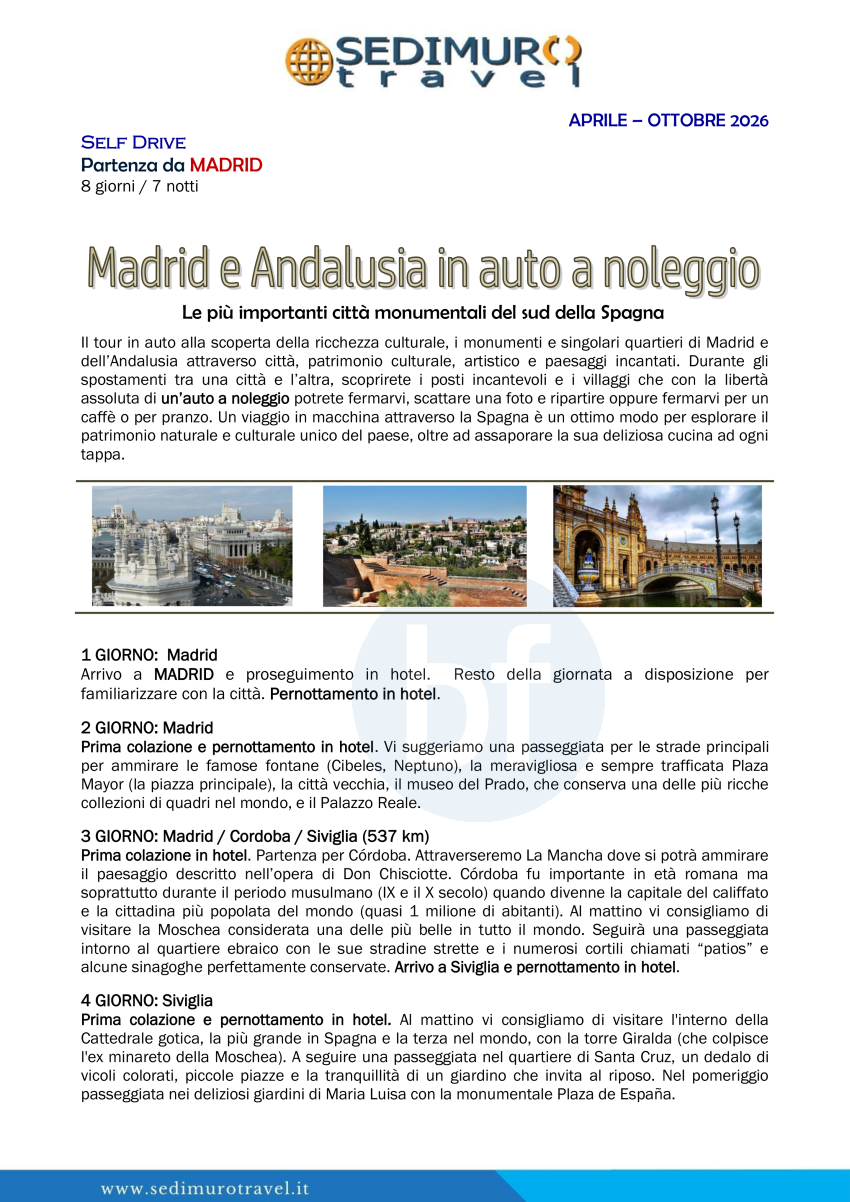 Madrid e Andalusia in auto a noleggio da Madrid 8 giorni