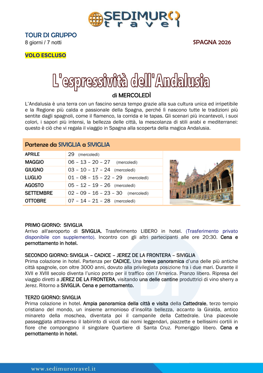 L’espressività dell’Andalusia di mercoledì da Siviglia 8 giorni